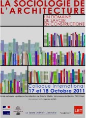 18/10/2011 - Colloque international "La sociologie de l’architecture. Un domaine de savoir en construction ?"